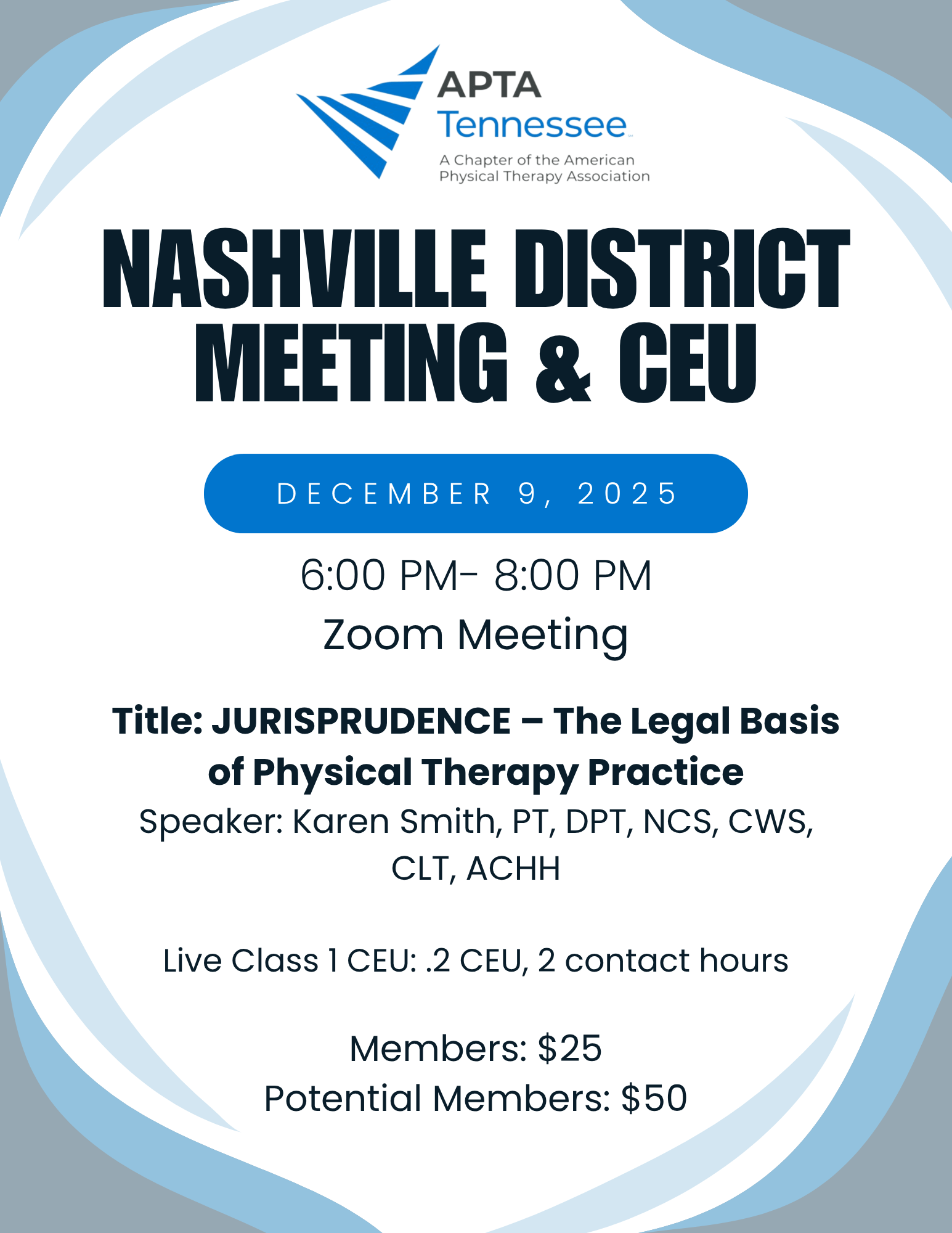 APTA TN Nashville District Meeting & CEU December 9